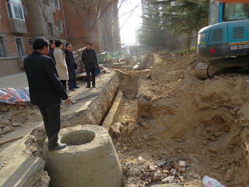 2015年2月后家属院19#楼前暖气管道及下水井年久破损漏水导致后家属院19#楼前路面发生大面积塌陷,严重影响了教职工正常出行。3月初后勤管理处及时组织学校纪委、审计、财务、后勤集团等部门相关人员进行了现场勘查及论证,确定后勤集团进行应急维修处理,施工期间多次对施工质量及工期进行检查、督促,克服了塌陷面积大、地下各种管网密集复杂、施工难度大等困难,在保证工程质量及施工安全的前提下,优化施工方案,目前工程已顺利完工,道路已恢复正常通行。