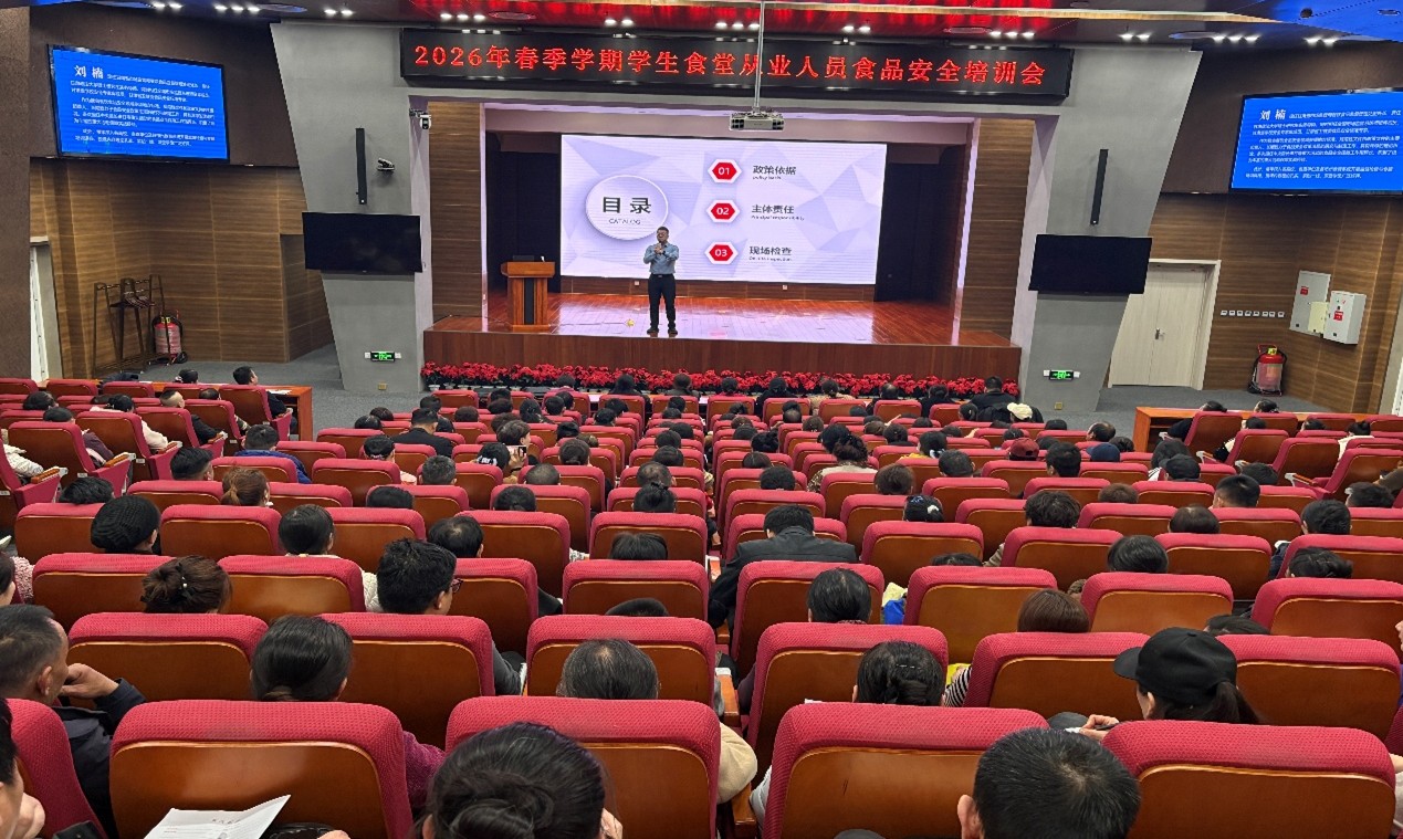 为进一步强化食堂从业人员的食品安全责任意识,提升专业素养和规范操作能力,切实把好校园食品安全关,3月20日和21日,后勤保障部分别在兰工坪校区和彭家坪校区组织开展2026年春季学期食堂从业人员食品安全培训会。